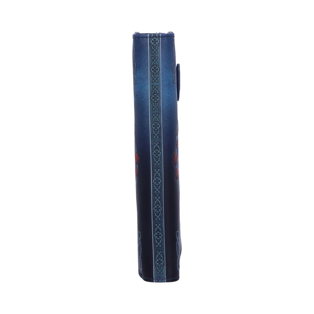 From the untamed, enchanted imagination of world-renowned artist Lisa Parker, this stylish and practical purse was created by alternative brand Nemesis Now. A White Wolf's head stares directly at you, soft green eyes portraying a soul untouched by civilisation. Behind this majestic beast, there sits elaborate Celtic patterns, edged with burnt red autumn leaves. Winter will soon be upon us... Cornered with Celtic knots, the starry background of this purse fades from azure to deep navy. The beautiful embossed detailing enhances the magic and creates a striking 3D effect while the large compartments make it a wonderfully practical piece.