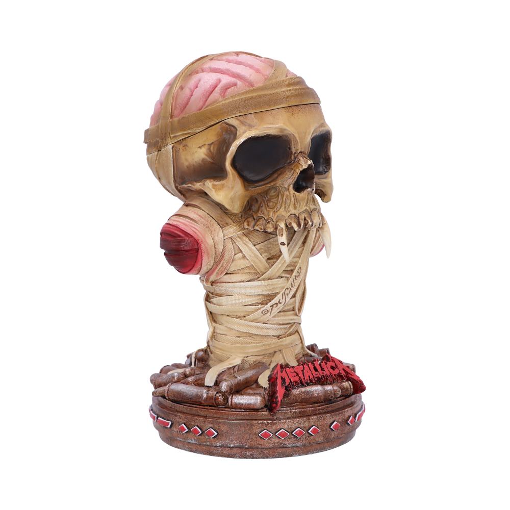Show your allegiance to the Gods of Metal with this officially licensed Metallica One Box. Inspired by the single 'One' taken from the band's fourth studio album 'And Justice for All'. Which portrays a severely wounded soldier who can be seen wrapped in bandages after being blown up by a landmine. Stood upon a pile of bullet shells, where the Metallica sits proudly, and is instantly recognisable to any heavy metal fanatic. Cast in the finest resin before being expertly hand-painted, this piece is a perfect way to pay homage to one of the most influential heavy metal bands of all time!