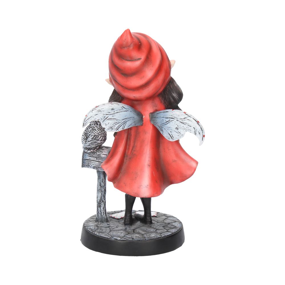 Cast in the finest resin before being expertly hand-painted, this quirky figurine comes from alternative brand Nemesis Now. Wearing a red, hooded cloak this unique Fairy has a pair of delicate white wings emerging from her back. Her raven hair frames her face which is decorated by a large heart. In her hands, she holds a love letter close while her owl companion sits calmly on a wooden letter box. The theme behind the figurine is emblazoned on the black base, 'Missing You'.